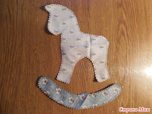 Зашиваем прорези и потайным швом пришиваем лошадку к основанию.