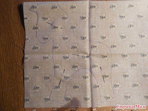 Обкалываем иголочками и прошиваем. Хочу заметить, что места для выворачивания я выбрала такие, чтоб потом можно было замаскировать..