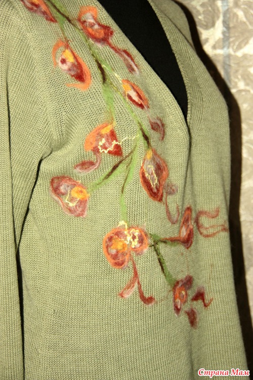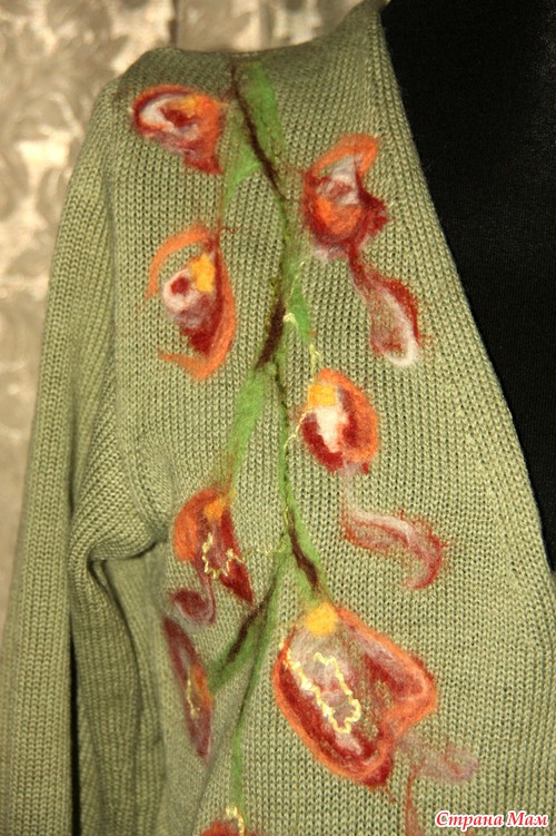 А это мои эксперименты с приваливанием шерсти. ООООчень увлекательно. Конечно, можно это назвать первый блин, но я изначально вязала кофту для работы. И цвета конечно не очень гармонируют, но сам процесс завораживает. Не собираюсь останавливаться на достигнутом.