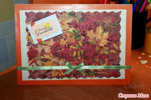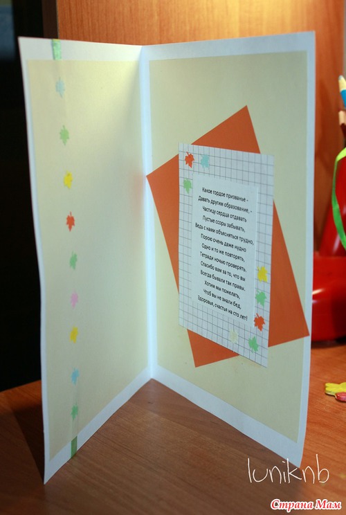 Открытку обязательно надо было подписать, т. е. имя фамилия ученика, какая школа. Здесь я придумала вот такую штуку..