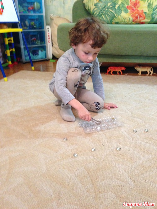 Собирал пинцетом "град" в ячейки. Замечательно освоил он "пинцетную технику"!
