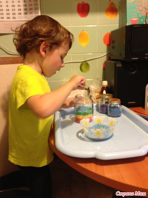 Делали радугу из крашеного риса