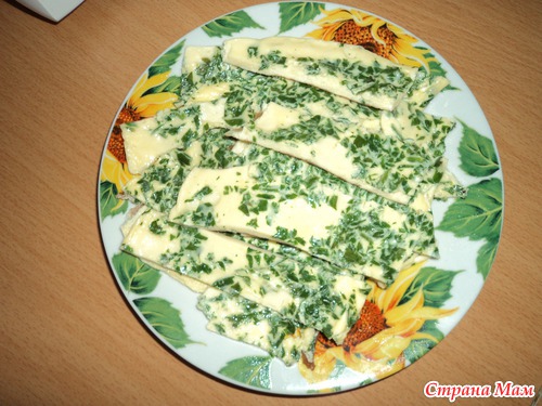 Для начала я приготовила омлет, смешала яйца с молоком, добавилась соль и мелко порезанную зелень