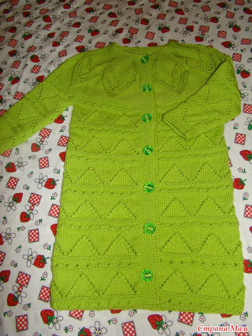 Есть у меня клевая книжка по вязанию для малышей, покупала, когда 1-го ждала. Влюбилась в платье. Наконец родилась дочечка. Вот прошлой зимой купила ниточек, вязала точно по описанию, всё вышло по размерам как в книжке (на годик). Я не знаю, когда мы до него дорастем