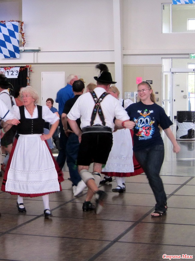 В общем поехали днем туда на Октоберфест. Парковка пустая, народа вообще нет, но нам было как раз, все равно любопытно поглядеть. Лида даже танцевала. К нам подошла девушка и предложила ей пойти потанцевать с их ансамблем, а что ее подруга (то бишь я) пусть их записываю на видео