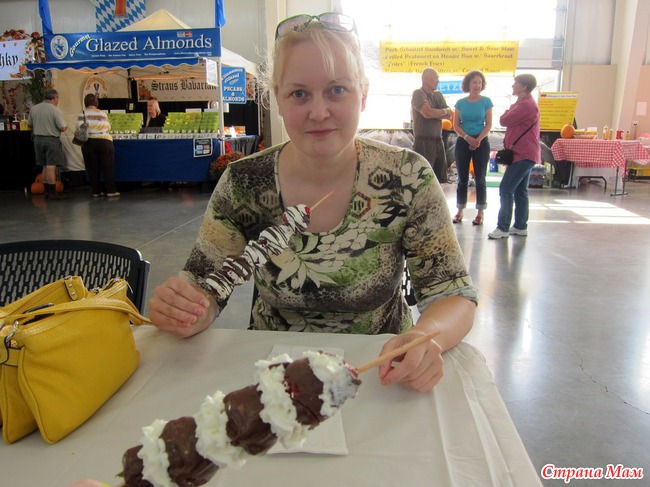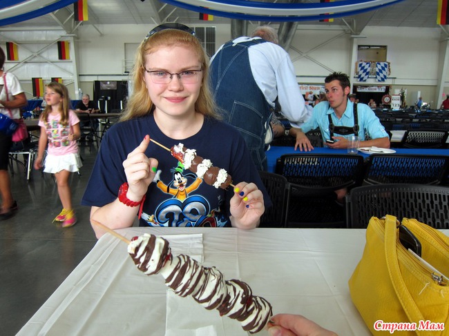 Побыли мы там 2 часа, съели по шашлычку из клубники в шоколаде и еще 1 огромный крендель с солью на двоих. Поболтали там со стареньким дедушкой немцем, организатором непосредственно этого фестиваля и поехали домой.
