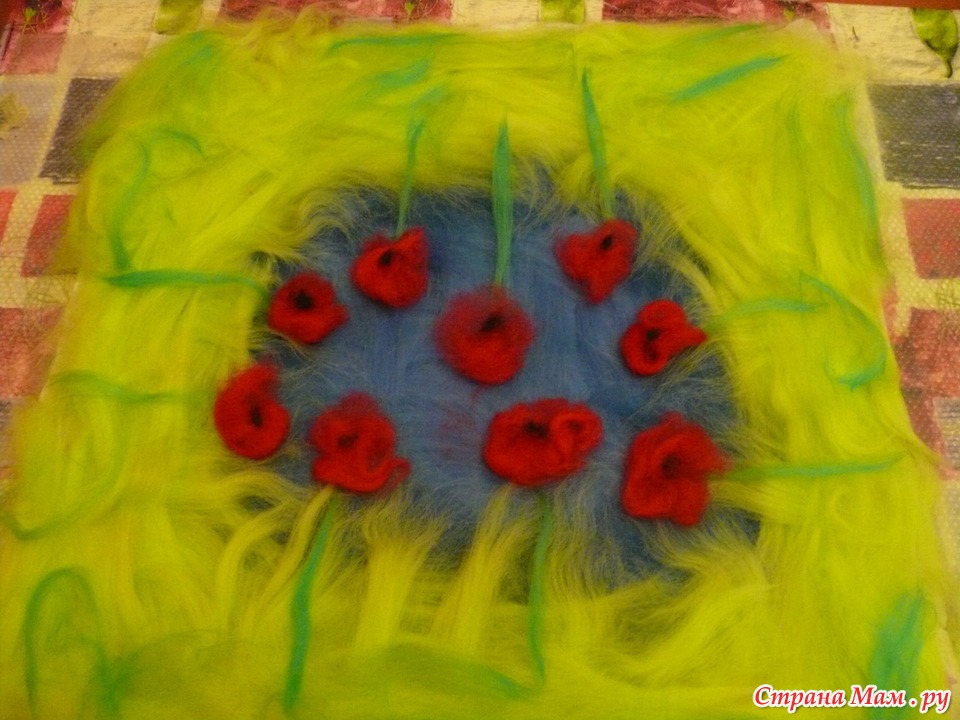 5. валяем руками - долго, чтобы привалялась шерсть к ткани