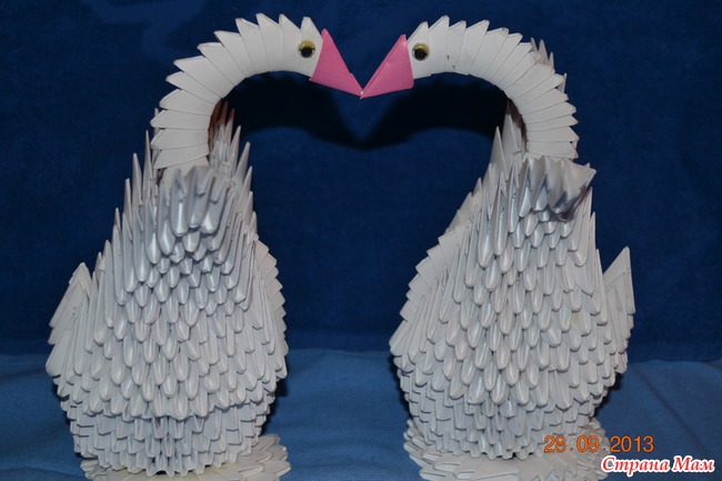 Моя старшая 10 летняя дочь Диана увлеклась модульным оригами и создала целую семью лебедей! Сначала были только принц и принцесса лебеди!