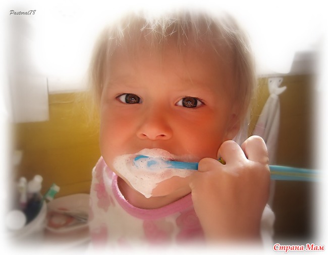 Хранить же зубные щетки рекомендуется в сухом стакане головкой вверх. Маленькая зубная щетка стоящая в стакане со взрослыми щетками может стать дополнительным предметом гордости Вашего малыша.