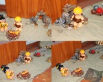 Из животного мира поселили туда носорога, льва и черепаху. Папины остатки коллекции стали пещерой и загородкой от носорога. Еще нашлись динозавры.