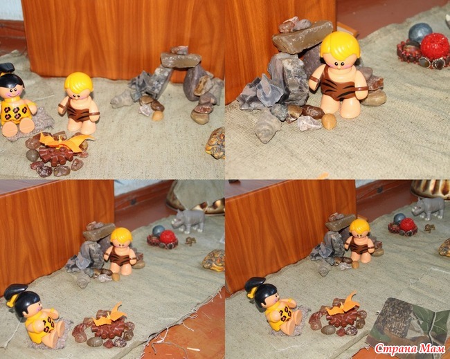 Найденные фигурки в шкурах идеально вписались как семья дикарей.