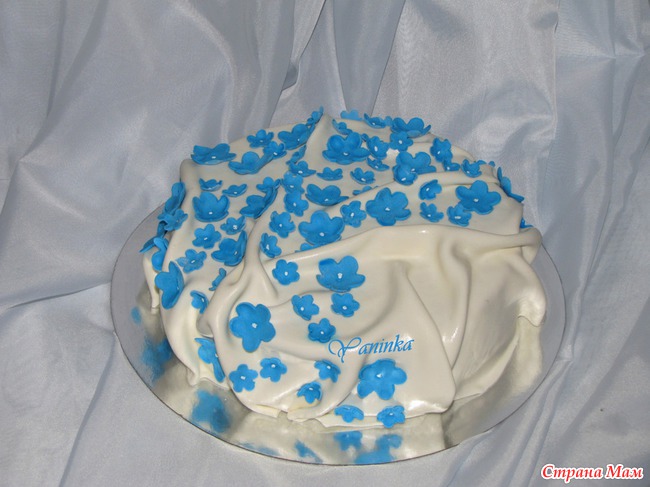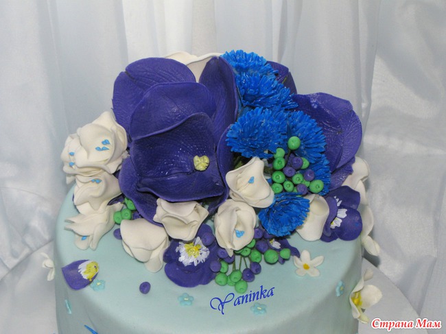 Сине-фиолетовые тона. 3,3 кг. Ванильный бисквит, сливочный крем, персики, апельсины.