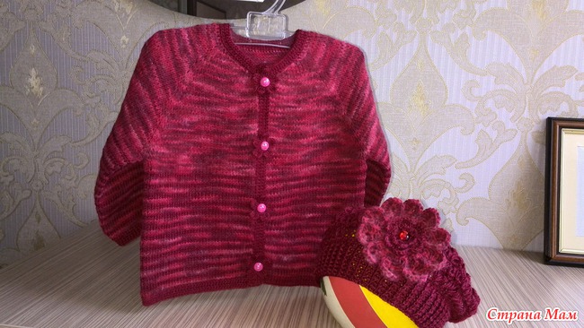 Решила попробовать что-то новое для себя, а на ком пробовать как ни на крестнице (она же маленькая ещё, ей быстро всё вяжется). Теперь благодаря мастерицам См и их МК я умею вязать реглан сверху спицами и брумстик крючком (правда МК по беретке брумстик не здешний, но посоветовала мне его одна из мамочек СМ).