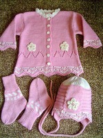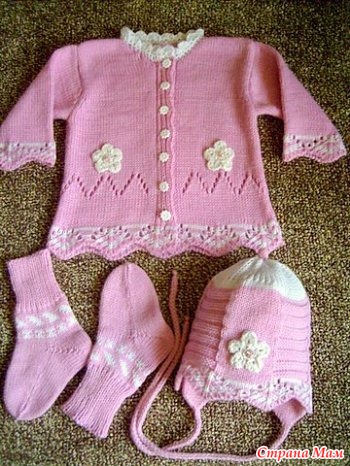 Вязала на рождение деткам костюмчики, мальчику и девочке, соответственно по цвету и отделка разная. Выкройку прилагаю- на 0-3 месяца.
