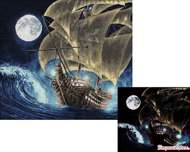 Поначалу я по наивности думала, что это вышивка на черной канве. Но когда делала заказ, оказалось, что вышивка-то сама на бежевой канве