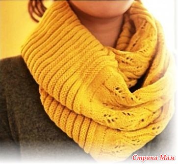 Сшиваем начальный и конечный ряды, перегибаем вязание пополам и снова сшиваем – красивый модный снуд готов.