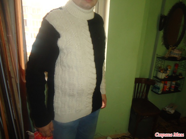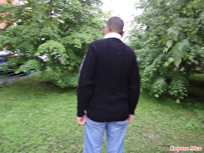 Сотрудник предложил ему деньги в обмен на свитер. Обмен состоялся. Мне была отдана только половина денег и потребован еще один свитер, который и был связан и который модель демонстрирует на природе. А первый - на лестничной клетке и в прихожей.