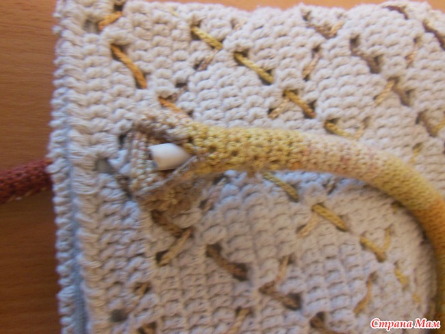 Совет : в вязаные ручки надо вшивать какую-нибудь ленту, напр. из органзы, чтобы не растягивались.