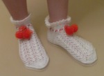 Размер 37-38. Количество петель 48, первые 4 ряда вяжем лицевыми, 5 ряд вяжем - 2 вместе лицевой за переднюю стенку, накид, 2 вместе лицевой за переднюю стенку, накид и т. д. до конца ряда. Затем 10 рядов лицевыми и повторяем 5 ряд (для тесьмы с помпонами), далее еще 10 рядов лицевой гладью. Пятку вяжем по стандартной схеме. Затем на 2-х из 4-х спиц вяжем ажур по схеме.