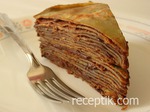 Выкладывать торт смазывая каждый блин сгущенным молоком и посыпая орехами. Последний блинчик не мазать сгущенным молоком.