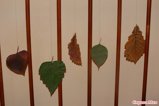 Для игры подвесьте несколько листочков (настоящих или вырезанных из бумаги) на ниточках. Скажите: "Осенью часто дует ветер. Ветер дует на листочки, листочки качаются". Подуйте вместе с ребёнком на листочки.