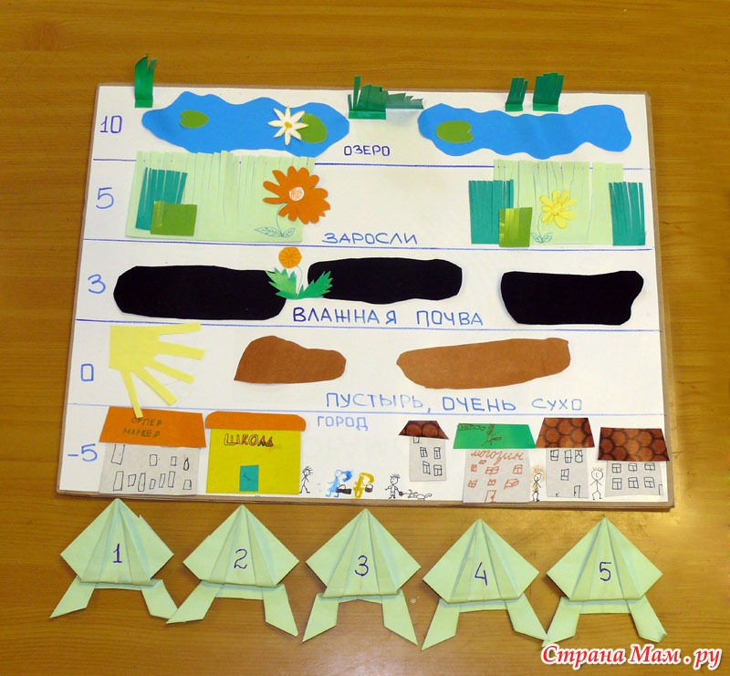 Сделали тут с детьми на кружке "Ребятам о зверятах" игру, чтобы с прыгающими лягушками поинтересней было забавляться и по-полезней.