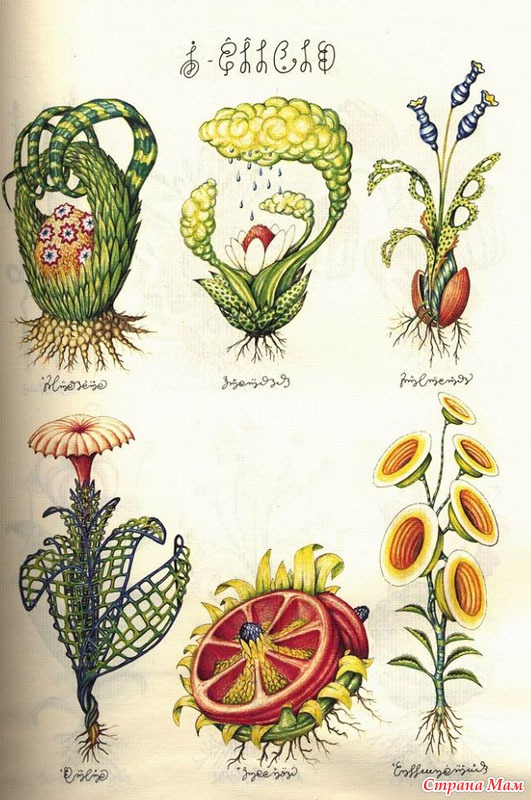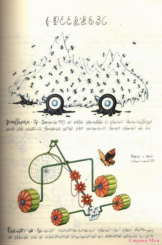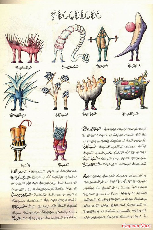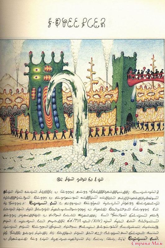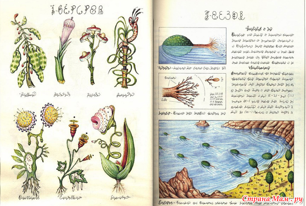 В книге более 360 страниц. Написана она на неизвестном языке, с неизвестным алфавитом. У Серафини ушло 2.5 года на создание сей шедевральной книги, поражающей воображение.