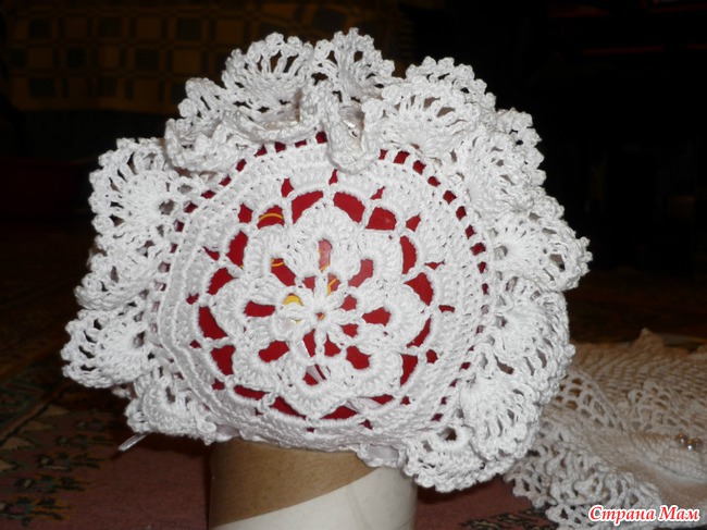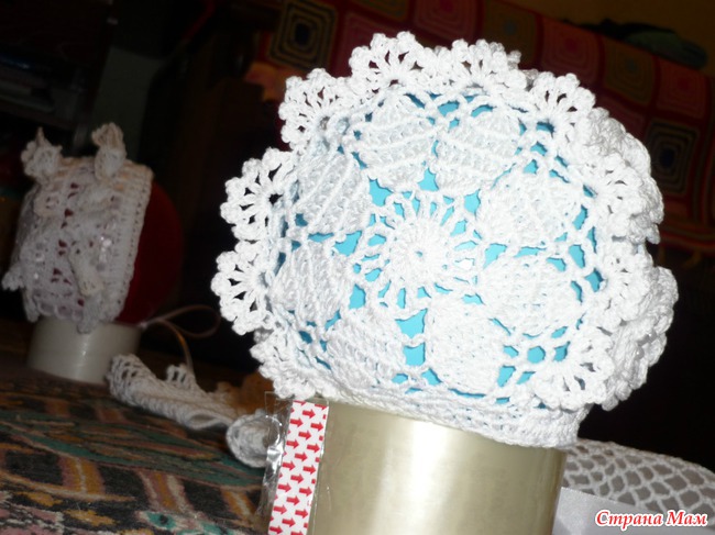 пинетки вязала вот по этой схеме только верхнюю часть в первом случае связала сеткой как у чепчика №1, а у вторых рюшкой как у чепчика№2.