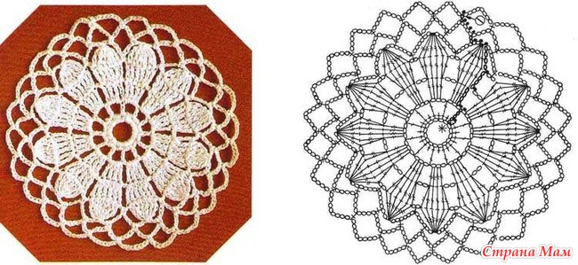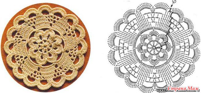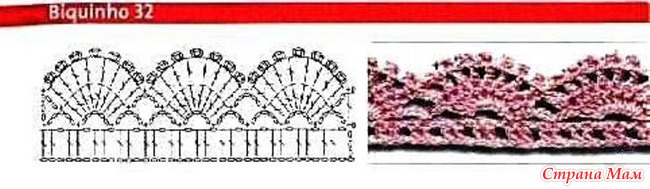 ) именно между рядами сетки я вязала рюшку. сперва ряд арочек из вп, потом сама рюшка вот по этой схеме