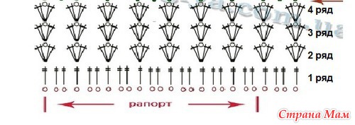1р. - 4 в. п. подъема, далее по схеме1 ряд1 = 110 С2Н, замкнуть в кольцо.