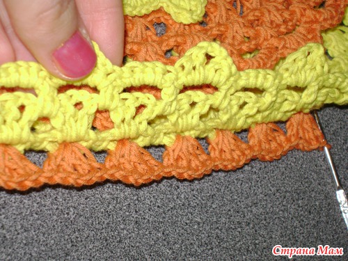 1ряд - обвязать пройму 82 Сбн оранжевой нитью.