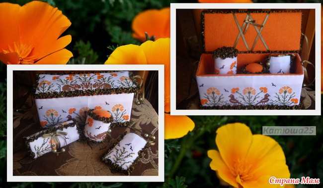 Летом участвовала в совместнике в группе "Бискорню и другие кривульки" - шили комплект для рукоделия. И вот что у меня получилось))