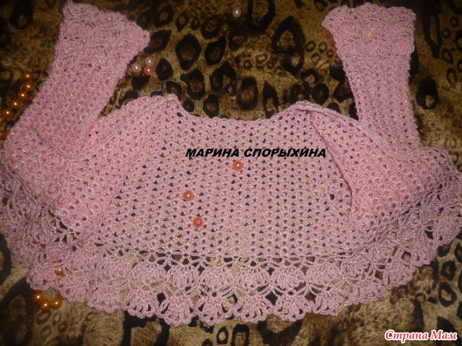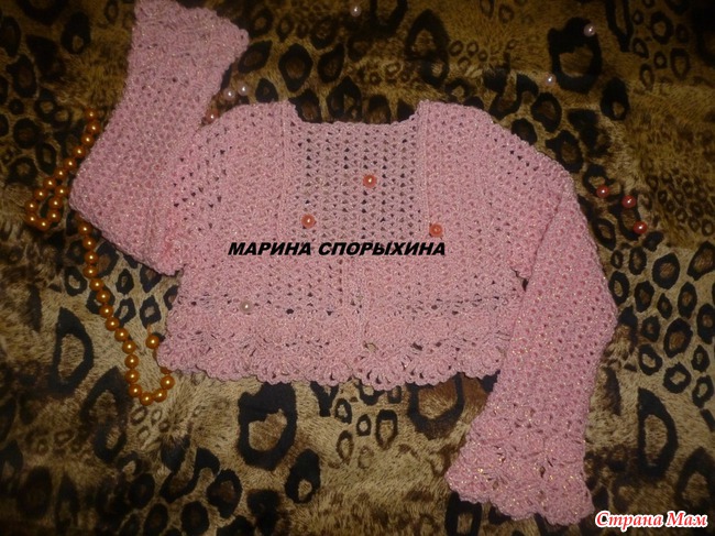 Заказчица просила с рукавами, но я переубедила ее на болеро, ибо по моему мнению с рукавами летом в нем будет жарко, а для зимы оно "дырявчатое" и пряжа не особо подходящая. Вот итог, болеро
