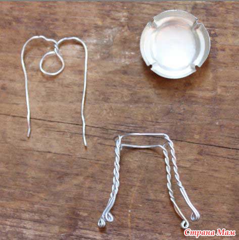 Берем проволочку и скручиваем в петельку как на фото. Далее снимаем сидение стульчика. Итак, у нас три детали.