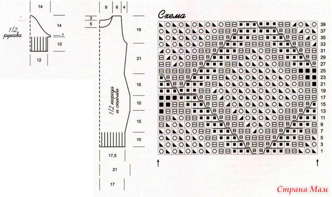 Стрелки на выкройке = направление вязания крючком или спицами.
