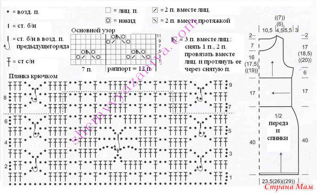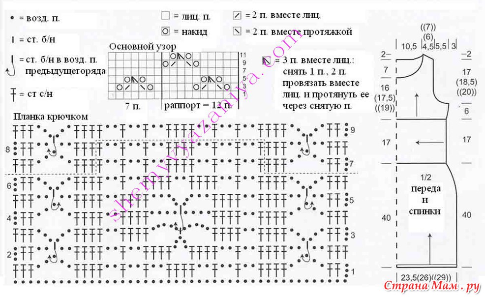 основного узора: 22 п. и 29 р. = 10 х 10 см.