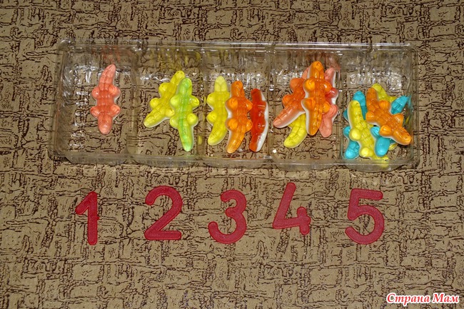 Разложили нужное количество крокодильчиков по ячейкам.