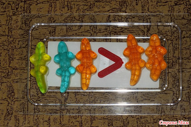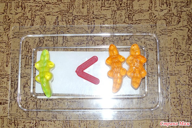 Первый раз попробовали задания на больше-меньше.