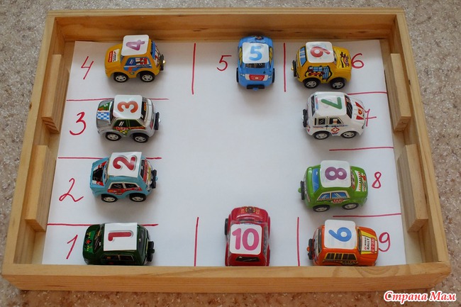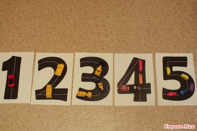 Цифры - дороги. Просто катали машинки и выкладывали нужное количество.