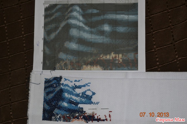 Приехав домой стало проще и скорость увеличилась)Получается вышивать только во время дневного сна сынули и пока он гуляет на улице, а это всего 2-3 часа в день. Не скажу, что процесс легкий, т. к много различных оттенков и полутонов(на фото не очень это заметно, увы). Вот, что в итоге на сегодня у меня получилось