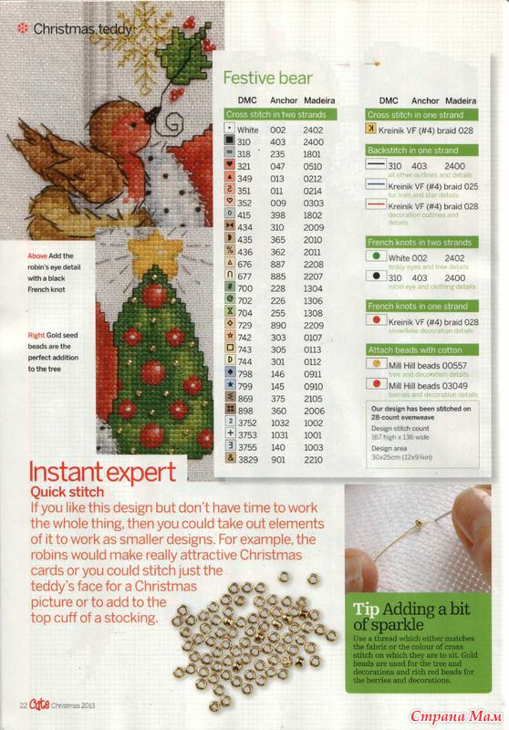 В вышивке используется бисер, золотая и серебряная мет. нити. Из журнала Cute Cross Stitch №3 Christmas 2013