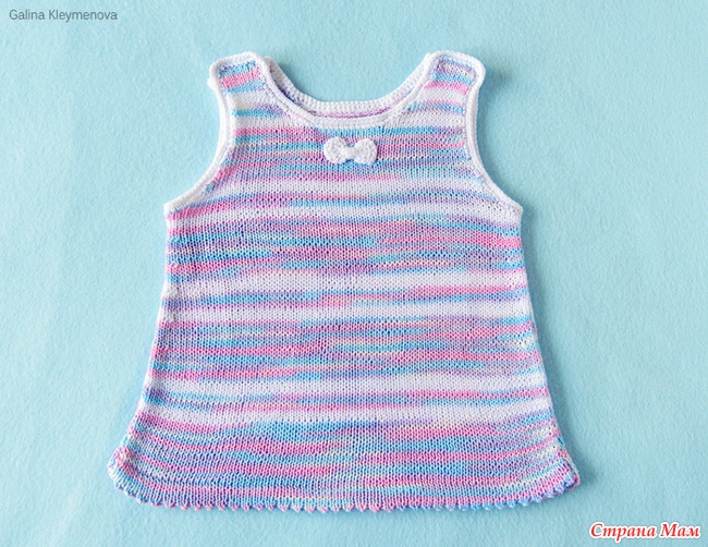 Спицами я вяжу мало, так как не очень люблю вязать образцы и делать расчеты. Но увидев в журнале Сабрина Baby очаровательное голубое платьице, решила обязательно попробовать его связать.