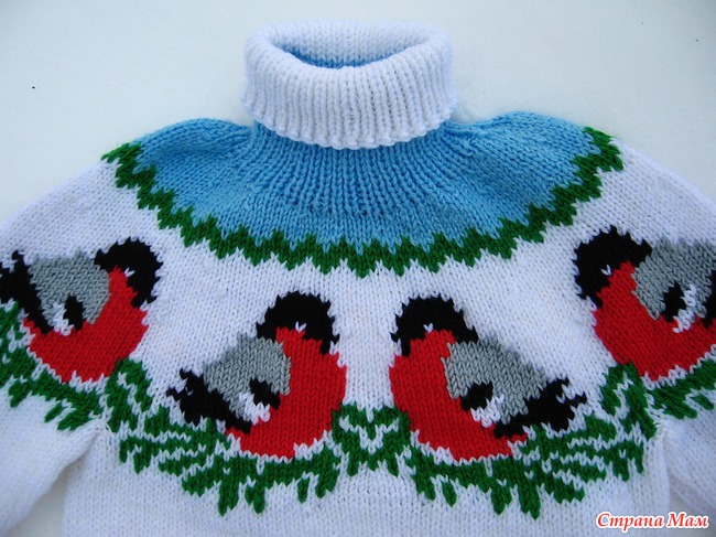 Снегири и пингвины)Шапочка и свитер с описанием.
