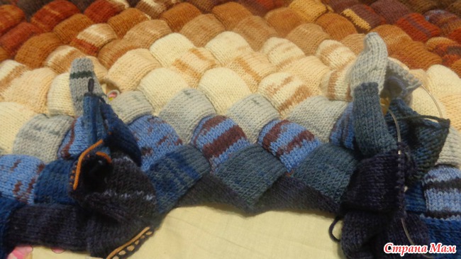 Да, в этой технике очень забавно вязать, особенно из пряжи секционного окрашивания: заранее не знаешь, как цвет "ляжет"..