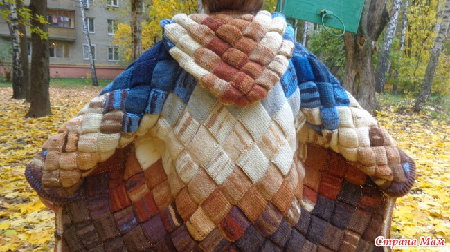 Встретилась мне как-то на просторах Интернета необыкновенная моделька пальто, выполненная в технике энтерлак (вязаный пэчворк). Идея прочно засела в голове, я понимала, что технически модель сложная, но тем не менее решила: хочу, значит буду!