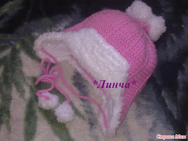 Шапочка связана крючком №2,5. Подклад сшит из флиса.