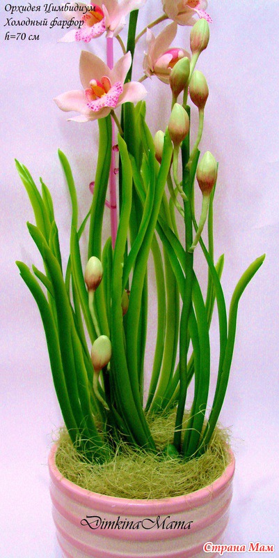 Вот такая орхидея у меня выросла. Цветы из полимерной глины, все остальное самоварный холодный фарфор.