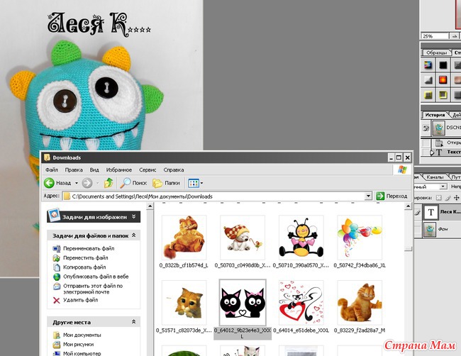 теперь вставляю "логотип", я его нашла на яндекс фото, вбив в строку поиска "клипарт" http://fotki.yandex.ru/search.xml?text=%D0%BA%D0%BB%D0%B8%D0%BF%D0%B0%D1%80%D1%82 можно добавить как я " клипарт котята", т. е. выбрать тематику. Скачиваю и перетаскиваю из папки в фотошоп картинку