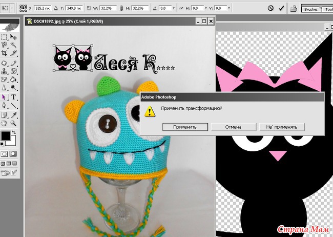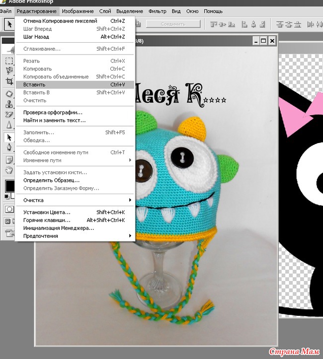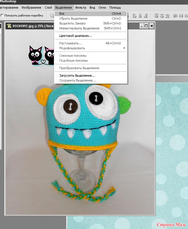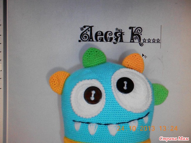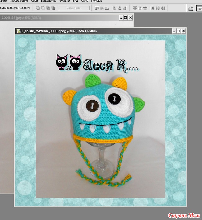 Ведь и вправду,есть разница-шапочка на белом фоне или шапочка в соседстве с весёлыми котятами ,в красивой рамочке...Хочется работу разглядывать и разглядывать.