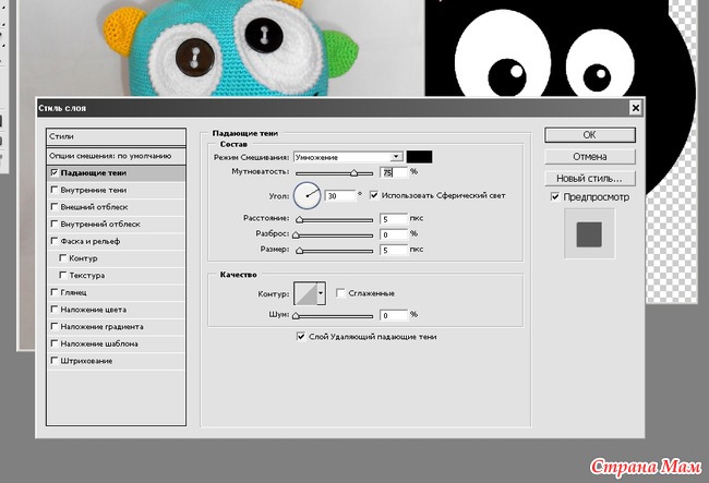 выбираю мутноватость тени, я её делаю бледнее двигая стрелочку на глаз, и нажимаю ок